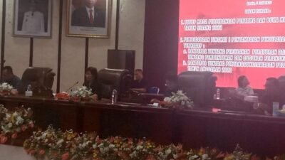 Manado, Portal24.id – Dihadiri Wakil Walikota Manado dr. Richard Sualang, ketua Dewan Perwakilan Rakyat Daerah (DPRD) Kota Manado Dra. Aaltje Dondokambey, M.Kes, Apt memimpin Rapat Paripurna DPRD Kota Manado di Ruang Rapat kantor DPRD Kota Manado, Senin (03/07/2023).